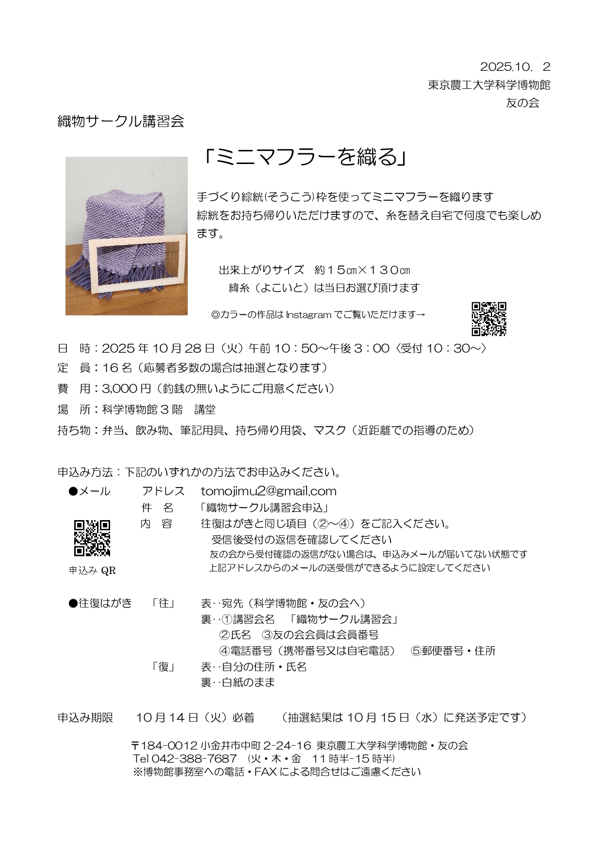 〒184-0012 小金井市中町 2-24-16 東京農工大学科学博物館・友の会